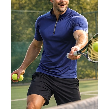 Per uomo Tinta unita Maglietta sportiva Maglia da tennis Maglietta da tennis Manica Corta Zip a un quarto Asciugatura Rapida Elastico Traspirante Tennis Da golf Pickleball Collo alla coreana Top Nero