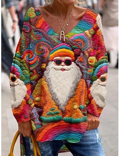 Natale Per donna Maglietta Stampato Grafico Babbo Natale Natale Elegante Vintage Moda Manica Lunga Scollo a V Top Regolari Quotidiano Weekend Rosa Rosso Verde Primavera Autunno Inverno