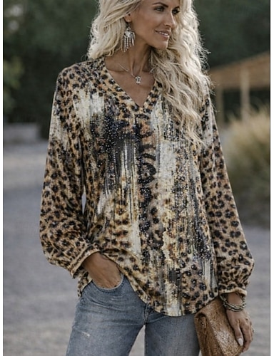 Per donna Camicia Camicia casual Top estivi Grafico Animale Leopardo Elegante Bohemien Vacanza Manica Lunga Scollo a V Top lunghi Quotidiano All'aperto Ufficio Leopardo Marrone Estate Primavera