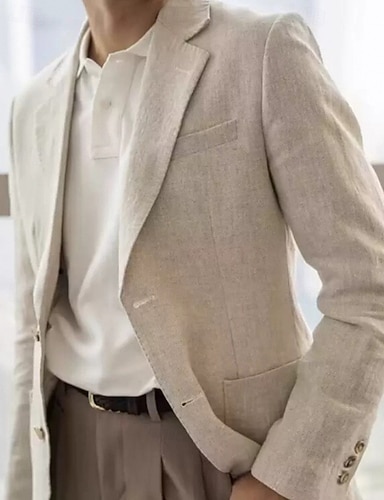 Per uomo Blazer in lino Blazer Affari Cocktail party Ricevimento di matrimonio Moda Casual Primavera Autunno 30% lino 70% poliestere Semplice Tasca Bottoni Confortevole Monopetto Giacca Bianco Kaki