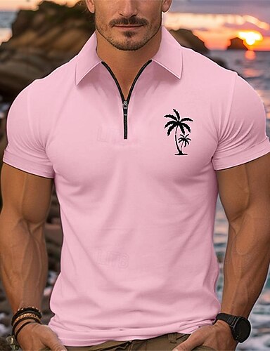 Per uomo Polo con zip a un quarto Camicia da golf Golf Giornaliero Per eventi Bavero Manica corta Di tendenza Essenziale Albero di cocco Stampa Estate Primavera Standard Nero Bianco Rosa Blu marino