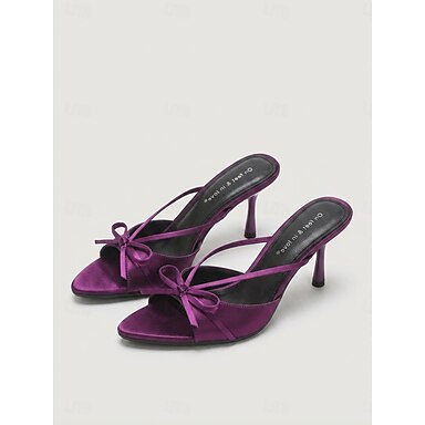 Sandali da donna con tacco a spillo e fiocco in raso viola – eleganti scarpe da cocktail per feste.