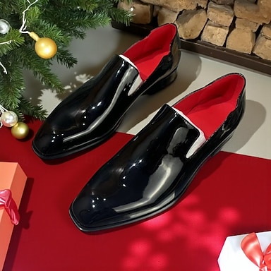 scarpe oxford da uomo in pelle rossa e nera con finitura lucida: eleganti e alla moda per le cene di Natale e le occasioni festive