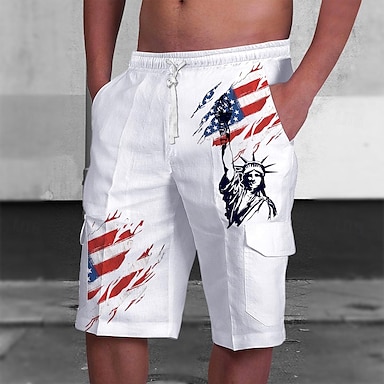 Pantaloni Corti da Uomo Bandiera Statua della Libertà Bandiera Americana Vita Media Vacanza Moda Streetwear Outdoor Casual Festa con Cordino Tasche Laterali Abbigliamento Designer