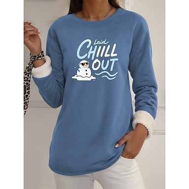 Per donna Pigiama felpato foderato in pile Felpa Pullover Pullover Felpe Stampato Lettera Caldo Streetwear Casual Manica Lunga Girocollo Top Regolari Casuale Casa Abbigliamento Quotidiano Blu Nero