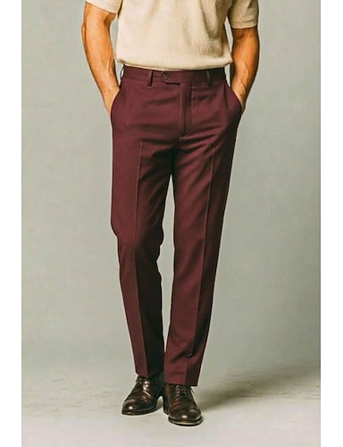 Uomo Poliestere Pantaloni Eleganti Formale Nero Rosso Borgogna Tinta unica Vestibilità regolare Lungo Micro-elastico