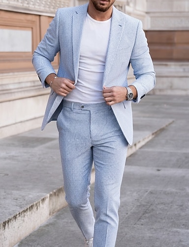 Per uomo Giacca blazer Giacca Sportiva Colletto ad incastro Moda A righe Blazer Abiti in seersucker Azzurro cielo Vestibilità standard