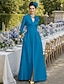 Due Pezzi Tuta Completo Pantalone Completo Pantalone Lunghezza al pavimento Abito da cerimonia per signora Manica 3/4 Scollo a V Elegante Semplice Casual Formale Ospite di nozze Chiffon con Pizzo