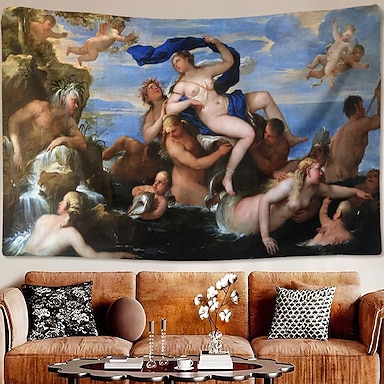 Rinascimento mitologia greca ninfe marine e cupido dipinto ad olio estetica arazzo da parete classico barocco belle arti grande tessuto da appendere per soggiorno camera da letto dormitorio