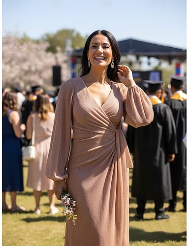 Tubino Colonna Lunghezza al pavimento Abito da invitata a nozze Abito Formale Abito da sera Abito da cerimonia per signora Manica Lunga Scollo a V Elegante Semplice Formale Ospite di nozze Festa di