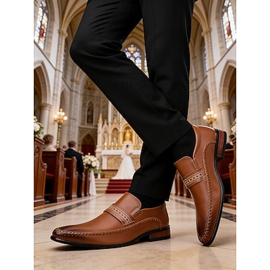 mocassini da uomo in similpelle marrone: design classico con dettagli eleganti, perfetti per matrimoni formali e occasioni speciali