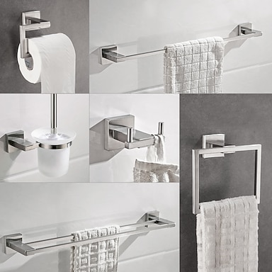 accessorio hardware per il bagno porta carta igienica / porta accappatoio e asta singola per bagno in acciaio inossidabile a parete argento spazzolato 4 pezzi / 3 pezzi / 1 pezzo