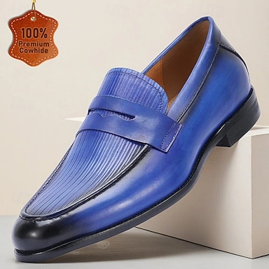 mocassini slip-on da uomo in pelle blu con dettagli plissettati: design elegante e di alta qualità per occasioni formali e semi-formali, ideali per ufficio e lavoro