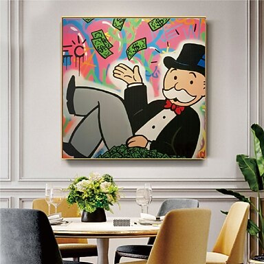 fatto a mano dipinto a mano pittura a olio parete pittura astratta moderna alec monopoly arte di strada soldi pittura su tela decorazione della casa arredamento tela arrotolata senza cornice non tesa