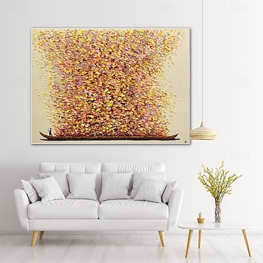 dipinto a mano con puntini colorati, dipinto a olio su tela, dipinto moderno con fiori testurizzati, dipinto murale con barca, dipinto floreale 3D, arte contemporanea, grande dipinto a olio da parete