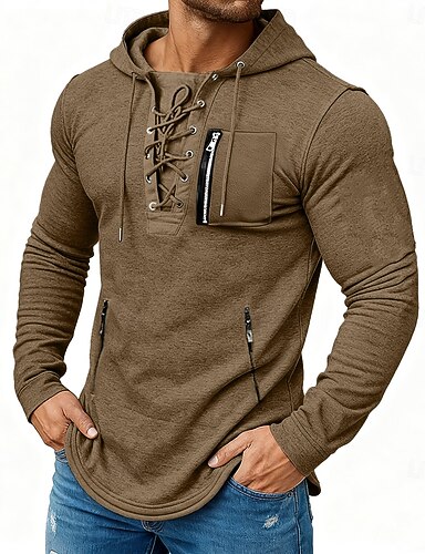 Per uomo Maglietta Camicia a Maniche Lunghe Manica Lunga Con Cappuccio Primavera & Autunno Tutte le stagioni Tinta unica Moda Designer Essenziale Allacciato Tasca con cerniera Vacanza Streetwear