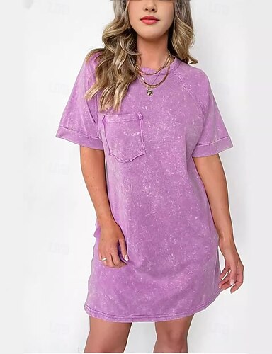 Per donna Abito al ginocchio Abito lavato Abito Vintage Vestito Casual Moda Essenziale Quotidiano All'aperto Vacanza Vestibilità regolare Semplice Manica Corta Girocollo Collo alla coreana Blu Rosa