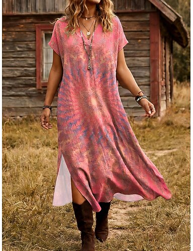 Abito Midi da Donna Boho Vestito A-Line Vacanza Casual Quotidiano Vestibilità Larga Grafica Geometrica Manica Corta V Collo Rosa Viola Estate Primavera
