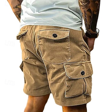 Per uomo Pantaloncini tattici Pantaloncini modello cargo Pantaloncini Bottoni Multi tasca Liscio Indossabile Breve Esterno Giornaliero Per uscire Di tendenza Classico Nero Blu