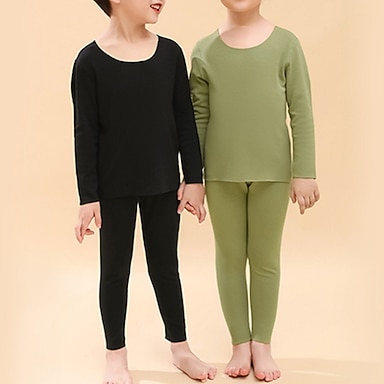 2 pezzi Bambino Da ragazzo T-shirt e pantaloni Completo Vestito Tinta unica Manica lunga Cotone Impostare Interni Adorabile Giornaliero Inverno Autunno 7-13 anni Viola chiaro Verde Nero