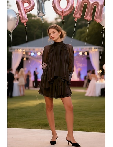 Abito da ballo Corto Mini Abito da Ballo Abito da invitata a nozze Abito da sera Abiti da Ballo Elegante Manica Lunga Collo Alto Balli di fine anno Formale Crepe Elasticizzato con Volant