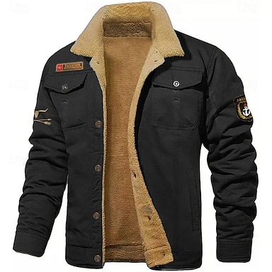 Per uomo USA Giacca in Pile Giacca Cargo Giacca Sherpa Tattico Calore Termico Vintage All'aperto Casa Ricamato Tasche Multiple Cappotti invernali Autunno Inverno Collo rovesciato in pile Manica Lunga