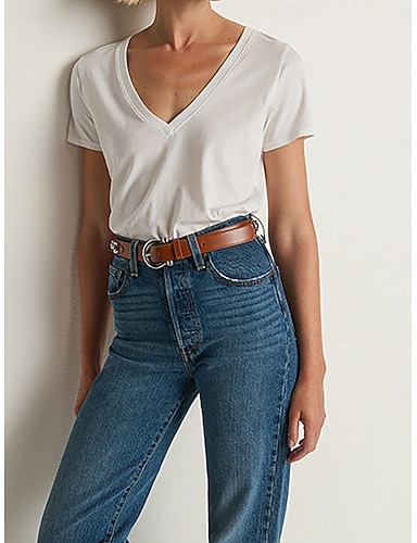 Per donna Top estivi Bottoni Vintage Casual Manica Corta Scollo a V Top Regolari Quotidiano Weekend Nero Bianco Blu marino Estate