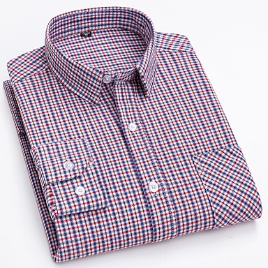 Per uomo Camicia Camicie Camicia abbottonata A quadri Ufficio e carriera Ricevimento di matrimonio Rosso scuro Rosso Blu marino Blu Manica lunga Bavero Primavera & Autunno Abbigliamento Tasca frontale