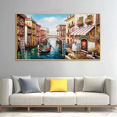 arte della parete dipinta a mano moderna astratta città fiume paesaggio decorazione della casa arredamento tela arrotolata senza cornice non tesa