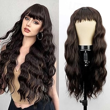 capelli sintetici lunghi e ondulati naturali da donna con fibra resistente al calore
