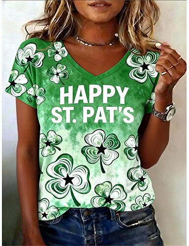 Giorno di San Patrizio Festa di San Patrizio Per donna Maglietta Stampato Trifoglio Elegante Casual Manica Corta Scollo a V Top Regolari Quotidiano Verde Estate Primavera