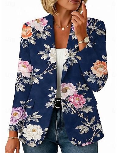 Per donna Blazer Caldo Confortevole Tasca Bottoni Stampato Quotidiano Casual Floreale Formale Ufficio Casuale Monopetto Regolare Bavero classico Vestibilità regolare Manica Lunga Capispalla blu navy