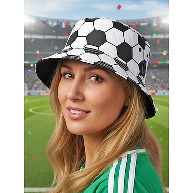 Cappello a secchiello da donna in poliestere con stampa a tema calcio, ideale per tifose, tifosi, appassionati di calcio, per partite, supporto alla squadra, abbigliamento casual quotidiano e outfit per il giorno della partita.