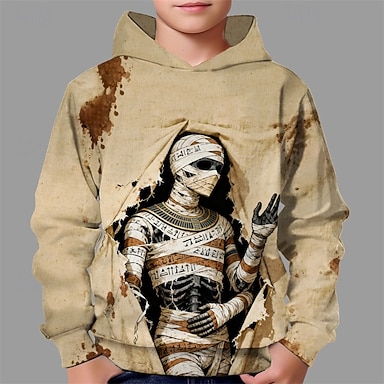 Halloween Ragazzi 3D Fantasma Felpa con Cappuccio Manica Lunga Primavera Autunno Moda Streetwear Bambini 4-12 Anni Con cappuccio All'aperto Casuale Quotidiano Vestibilità regolare