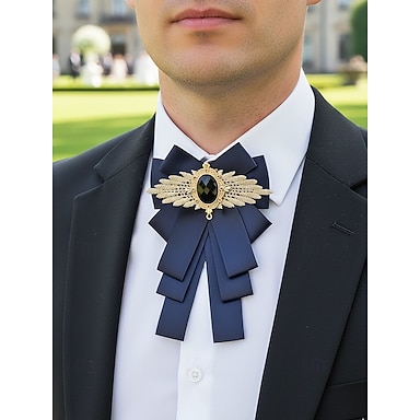 papillon da uomo in poliestere con spilla, disponibile in più colori, stile elegante per matrimoni ed eventi formali
