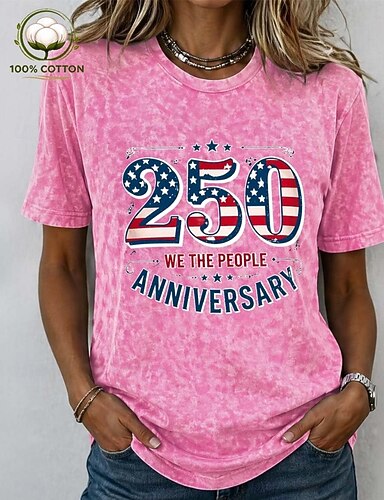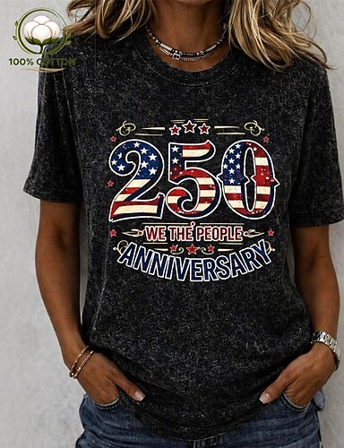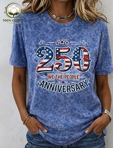 Giorno dell'Indipendenza Anniversario Americano Patriottico T-Shirt da Donna Grafica Lettera Vintage Elegante Classica Maniche Corte Collo a Girotondo Quotidiani Weekend Stampa Blu Estate Primavera