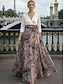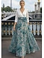 Linea ad A Lunghezza al pavimento Abito da Sera Elegante Quotidiano Floreale Manica 3/4 Scollo a V Matrimonio Formale Chiffon Raso con Stampa floreale Fiori 3D Arricciato