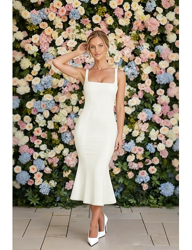 Tubino Colonna Lunghezza alla caviglia Abito Bianco Piccolo vestito bianco Elegante Piccoli Abiti Bianchi Senza Maniche Spalline sottili Matrimonio Tessuto Elasticizzato Senza schiena con Pieghe