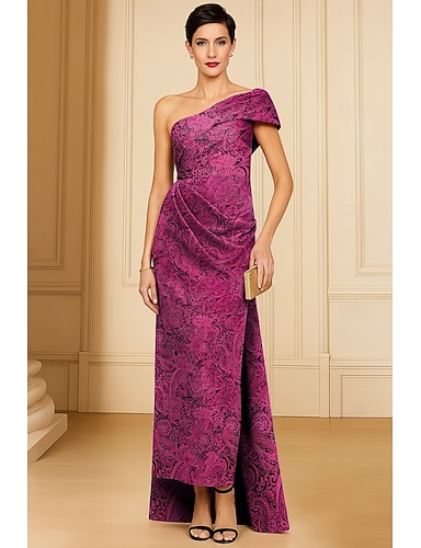 Guaina / Colonna Sera Lunghezza al pavimento Lunghezza alla caviglia Abiti da Cocktail Abito da ballo con sopragonna Elegante Vintage Senza Maniche Monospalla Formale Ospite di nozze Jacquard con