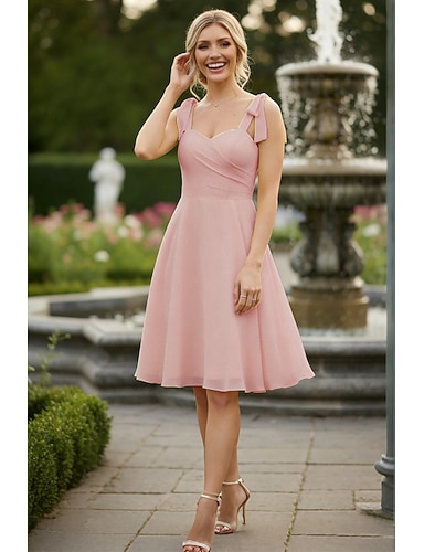 Linea ad A Vestito da damigella Scollo a Cuore Senza Maniche Schiena Scoperta Lunghezza al ginocchio Chiffon con Tinta unita