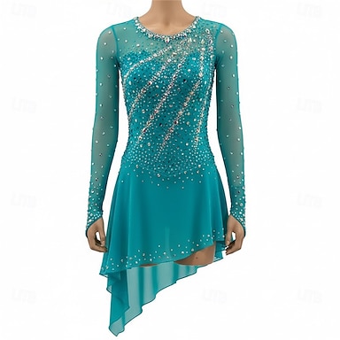 Abito da pattinaggio artistico Per donna Pattinaggio sul ghiaccio Vestito Verde Patchwork Orlo asimmetrico Elasticizzato Allenamento Competizione Vestiti da pattinaggio sul ghiaccio Classico