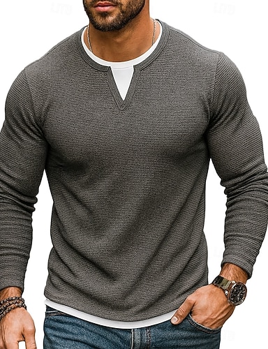 Per uomo Maglietta Waffle Maglietta Maglia Henley a nido d'ape Manica Lunga Girocollo Scollo a V Tutte le stagioni Tinta unica Tradizionale / Vintage Casual Finto due pezzi All'aperto Casa Sport
