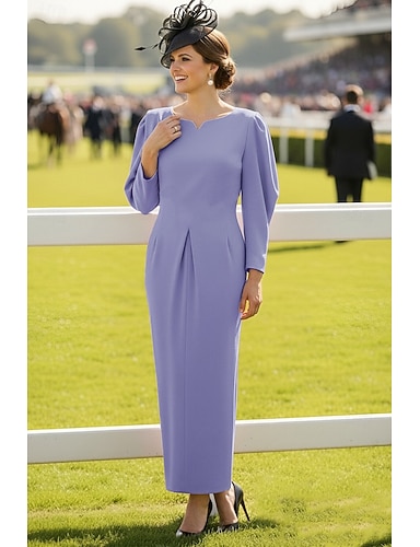 Tubino Colonna Lunghezza alla caviglia Abito da Cocktail Abito da invitata a nozze Abito Derby Abito da cerimonia per signora Manica 3/4 Scollo Tondo Elegante Formale Raso Elasticizzato Crepe