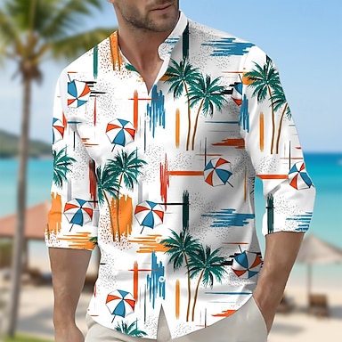 Per uomo Geometrico Albero di Cocco Piante Tropicali Camicia Camicie hawaiane Camicia con colletto alla coreana Manica Lunga Hawaiano All'aperto Vacanza Primavera Autunno Collo alla coreana Colletto