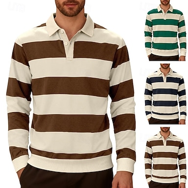 Per uomo Polo da Rugby Maglia da golf Lavoro Casuale Bavero Manica Lunga Essenziale Moderno A righe Bottoni Primavera Autunno Vestibilità regolare Blu marino Marrone Verde militare Polo da Rugby