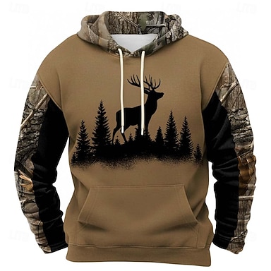 Per uomo Mimetico Cervo Felpa con Cappuccio Felpa Moda Classico Manica Lunga Girocollo All'aperto Caccia Viola Marrone Verde Coulisse Autunno Inverno progettista S M L XL XXL XXXL