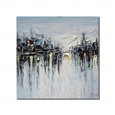 dipinto a mano originale paesaggio urbano dipinto a olio su tela grande coltello dipinto astratto urbano arte murale decorazione città riflessi arte regalo di Natale