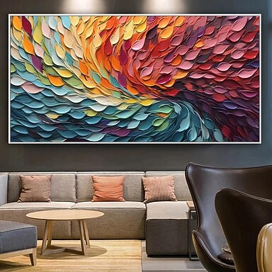pittura a olio fatta a mano dipinta a mano arte da parete astratta con coltello tela pittura decorazione della casa arredamento cornice allungata pronta da appendere