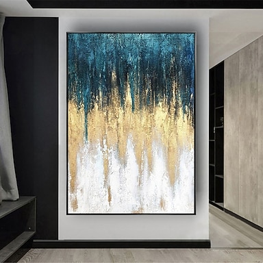 dipinto a olio su tela, dipinto a mano, moderno, astratto, blu, con texture a coltello, arte murale, decorazione per soggiorno