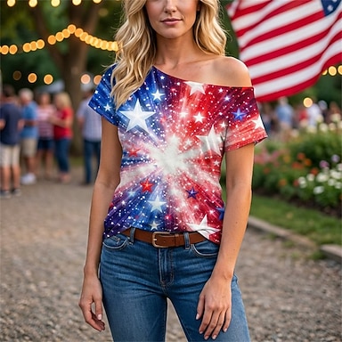 250° anniversario USA Retrò Vintage Anni '80 T-shirt Monospalla Maniche corte Costume Per donna 4 Luglio Giorno dell'Indipendenza Adulti Maglietta
